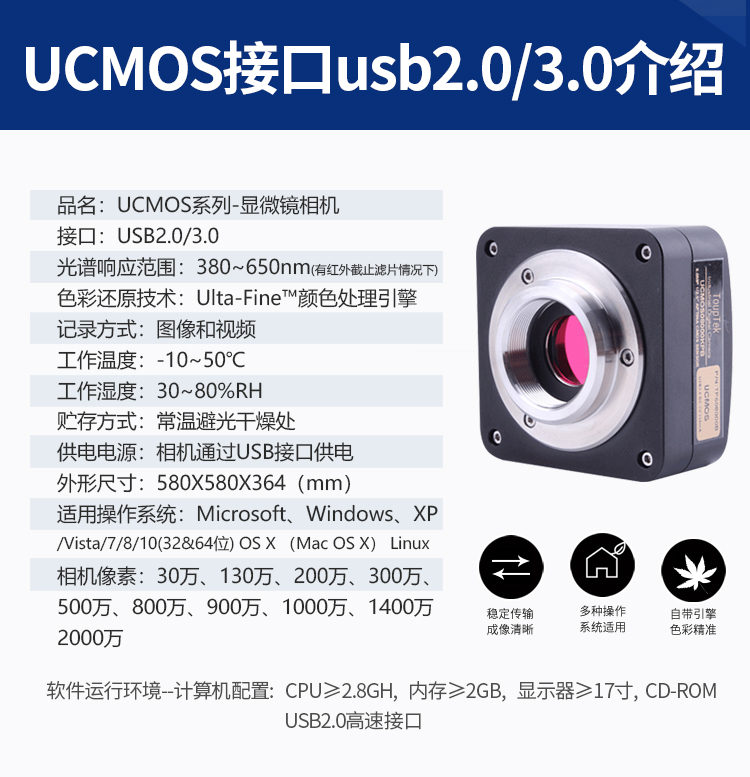 三目显微镜主机选配适配镜+HDMI/USB相机头
