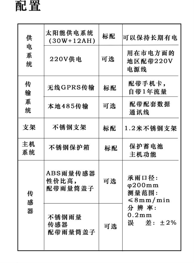 太阳能雨量监测站 选配传感器